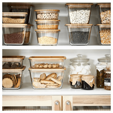 Flat items help you conserve space when packing and using them, much like flat containers. These containers can be used to store pantry goods such as nuts, biscuits, and ingredients for cooking. They come in various shapes, but the rectangular shape is the most optimal.