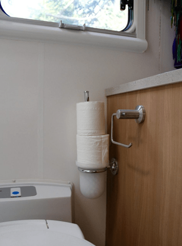 To get the most out of it, you can use this holder for the toilet brush as a tissue roll holder by using its handle. This versatile tool will definitely help you save space. The great part is that the handle will stop your rolls from unraveling, which can be a significant problem in a caravan.